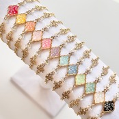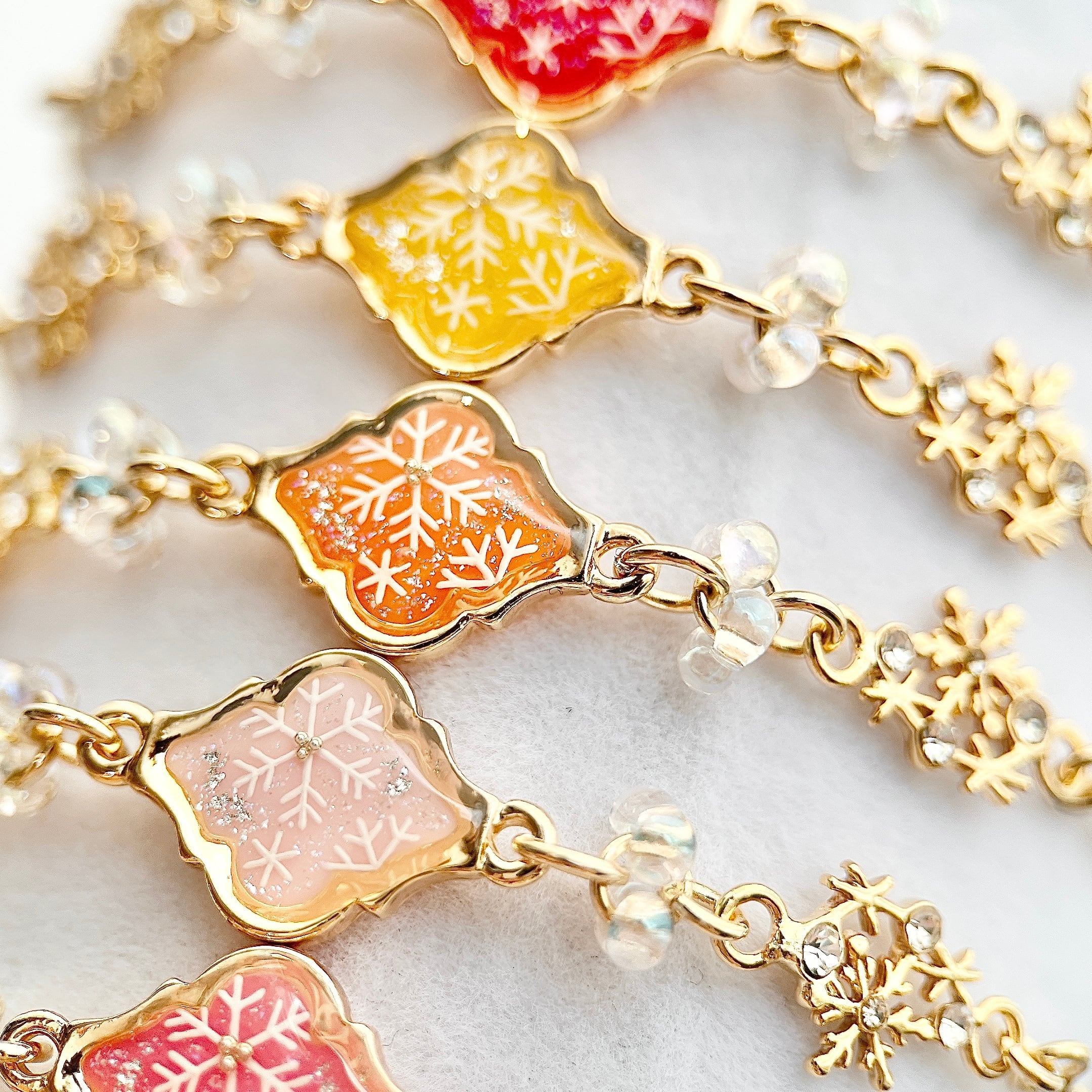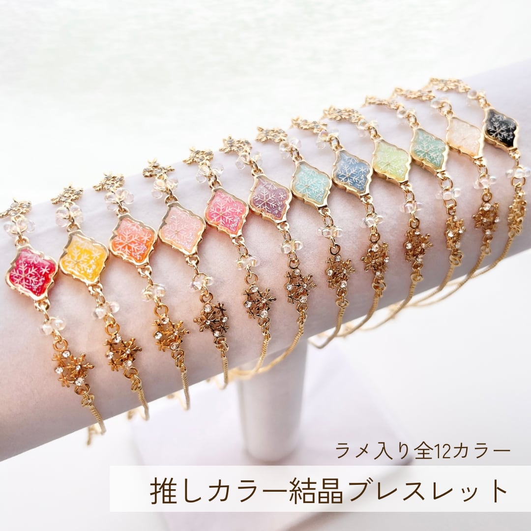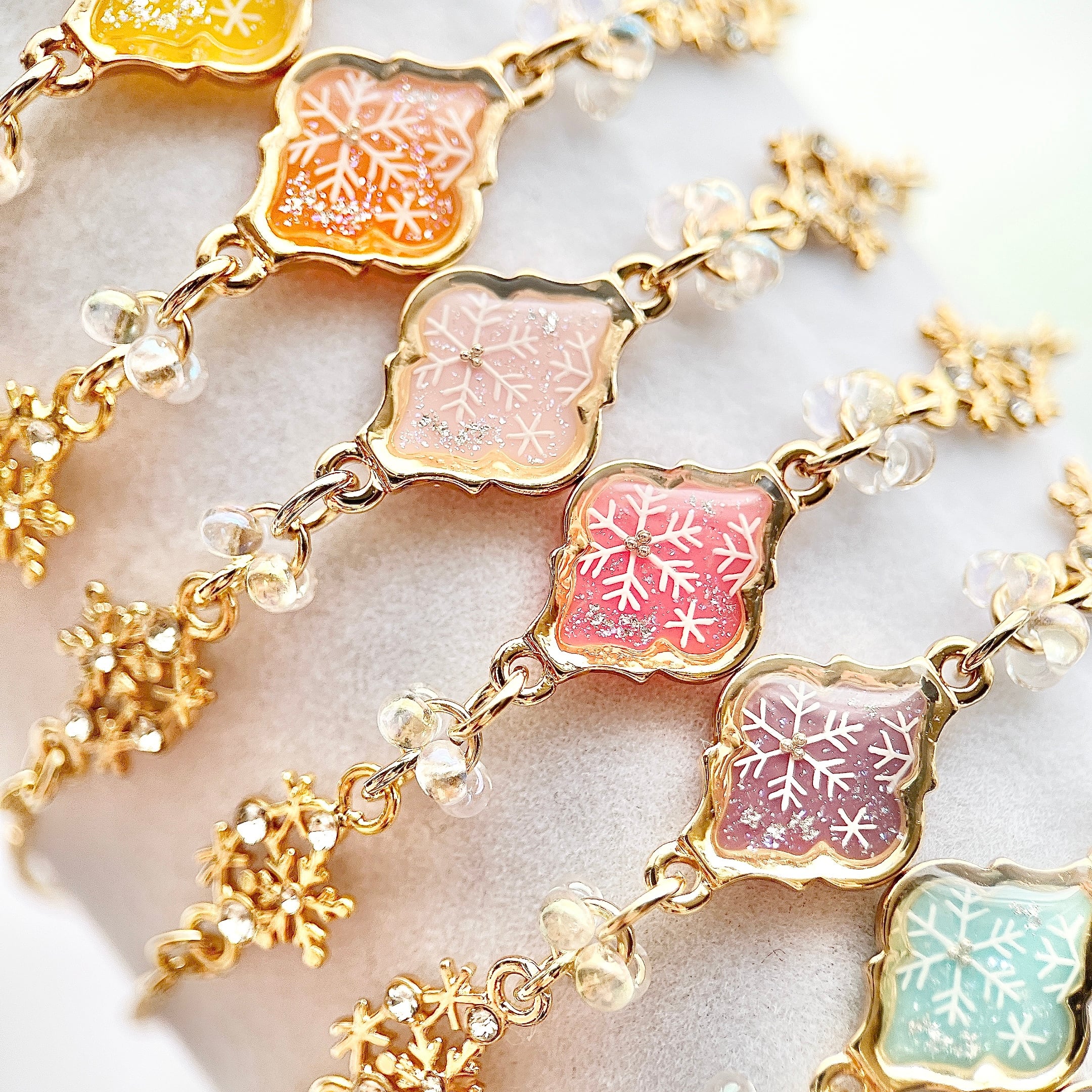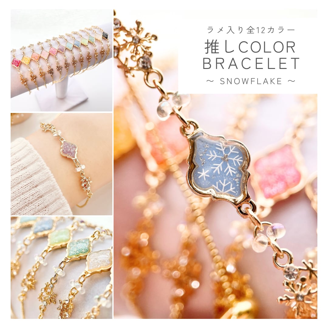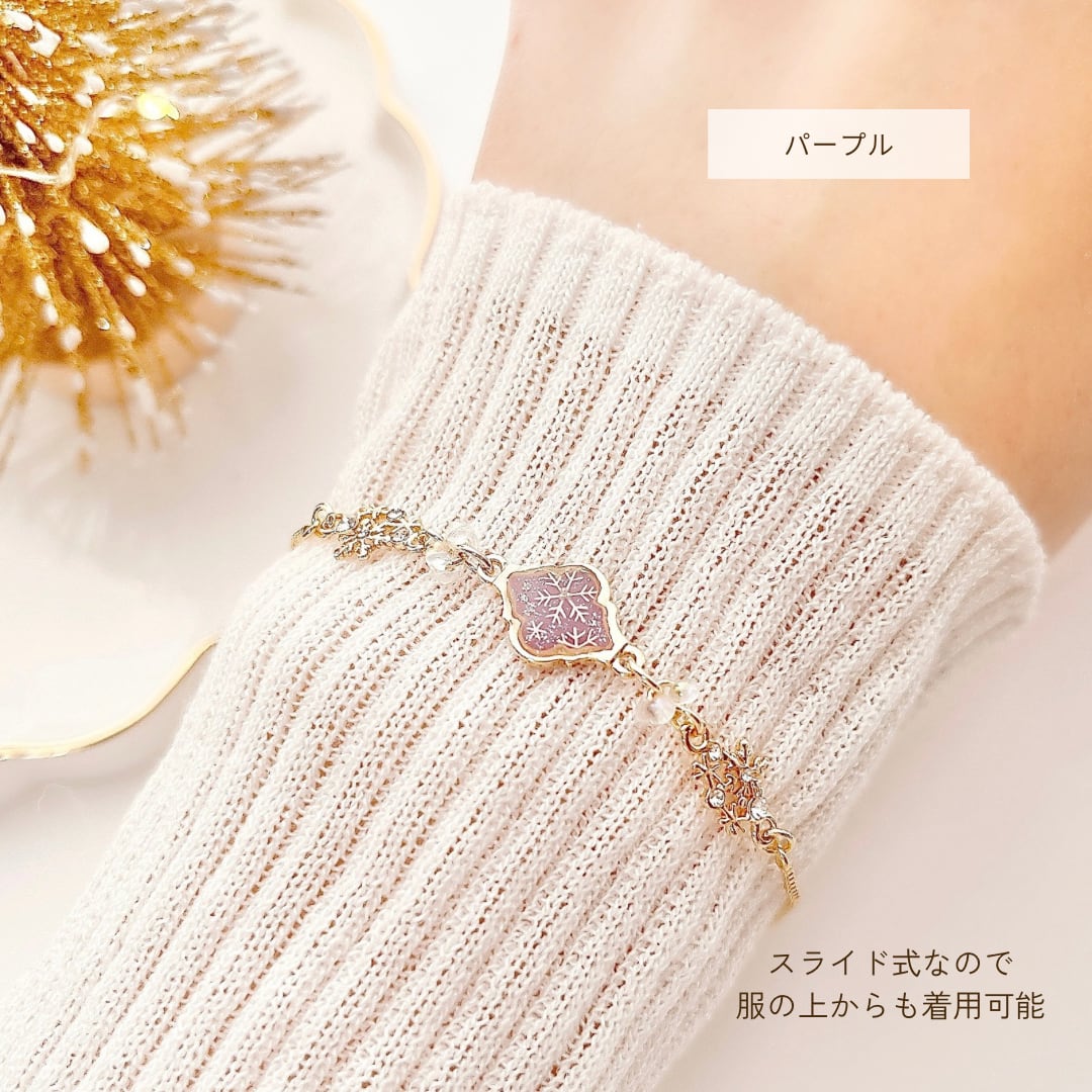 ✨左右には小さなガラスのストーンをあしらった雪の結晶モチーフのチャームを取り付け、冬を存分に感じられるブレスレットです⸒⸒⸒⸒