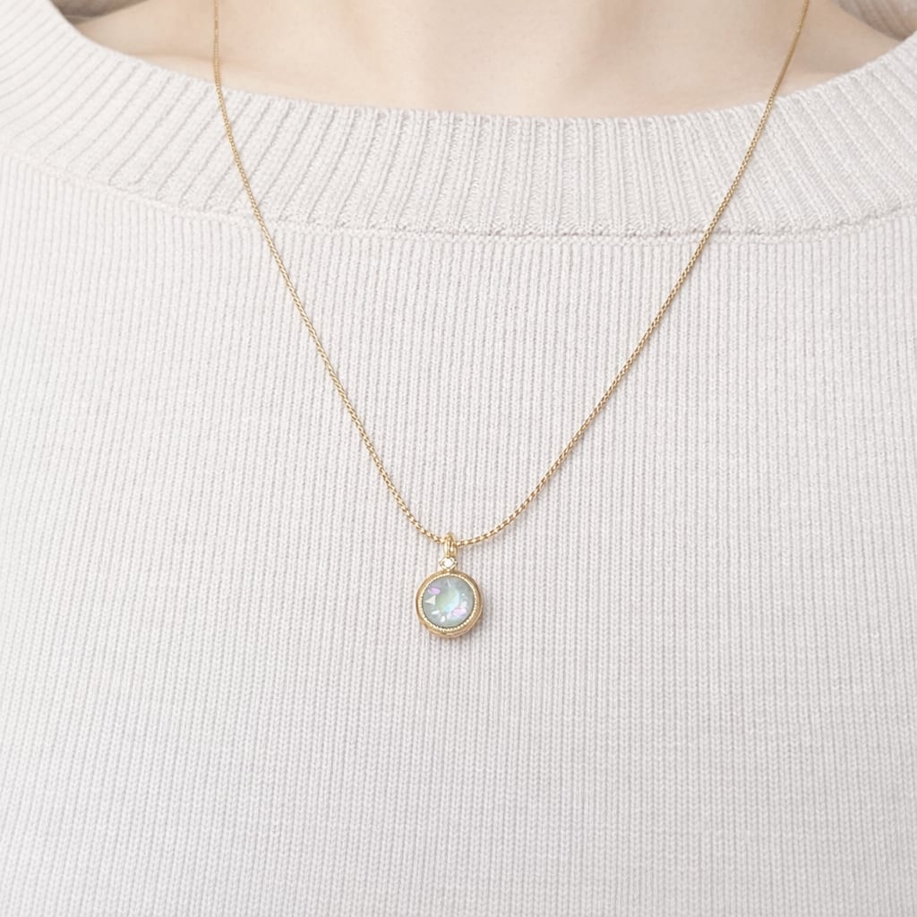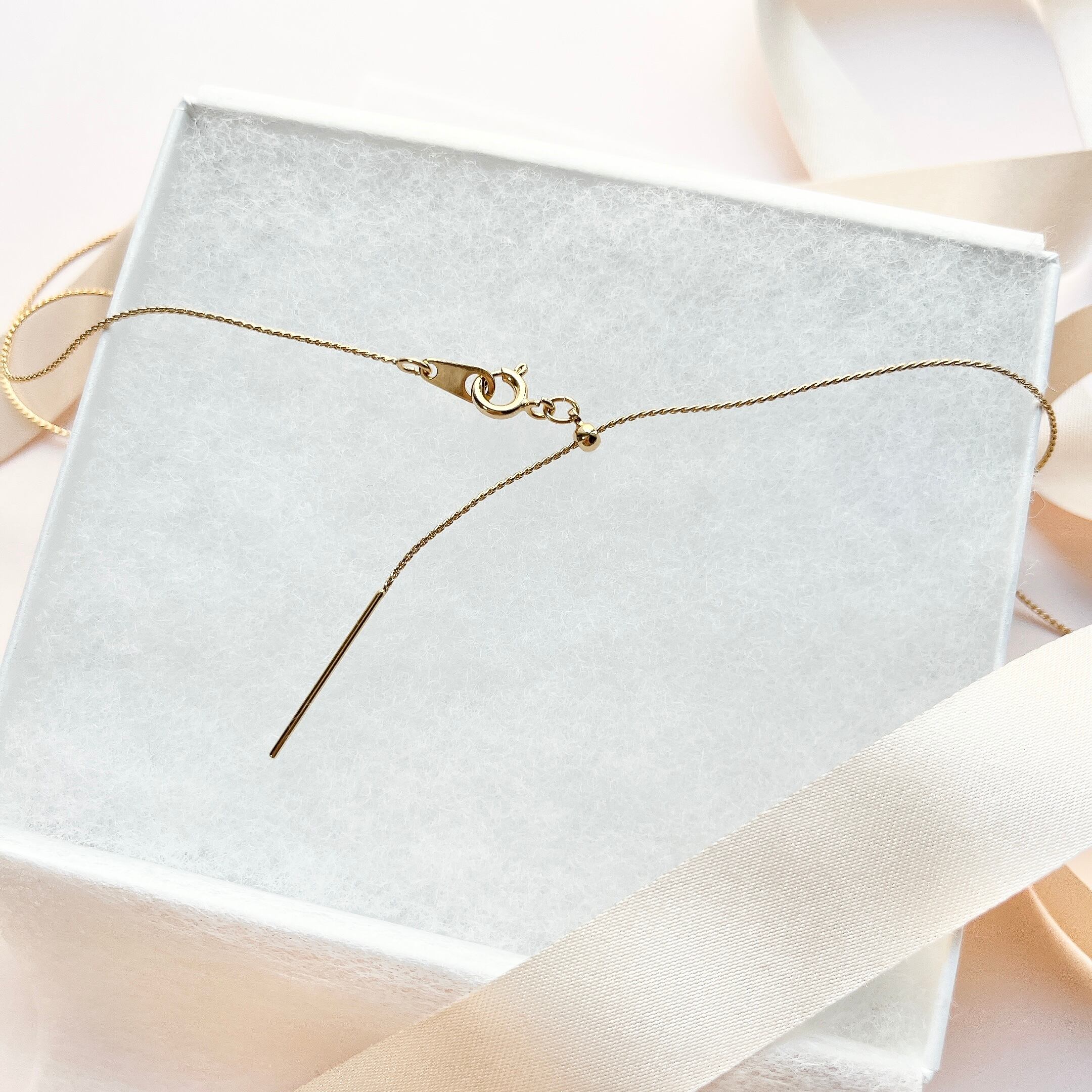 かなり細身のエレガンスチェーンを使用しスライドボール(直径約3mm)をスライドさせる事で長さ調節が簡単に出来ます。