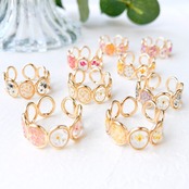 ✨レースフラワーのお花や、かすみ草の花びら、金箔などをレジンで4つの枠に閉じ込めたとても繊細なリングです.•*