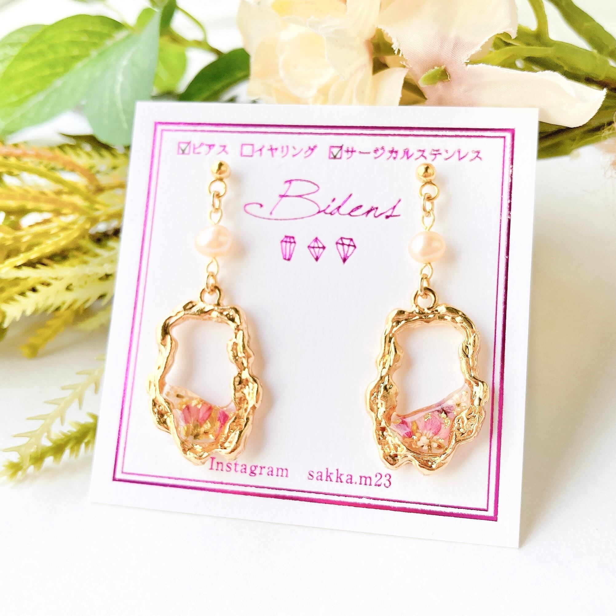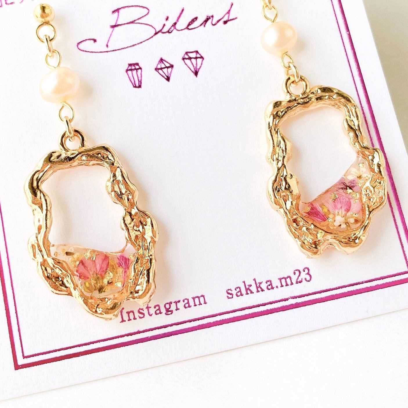 淡水パールといびつフレーム水滴のピアス/イヤリング No.118