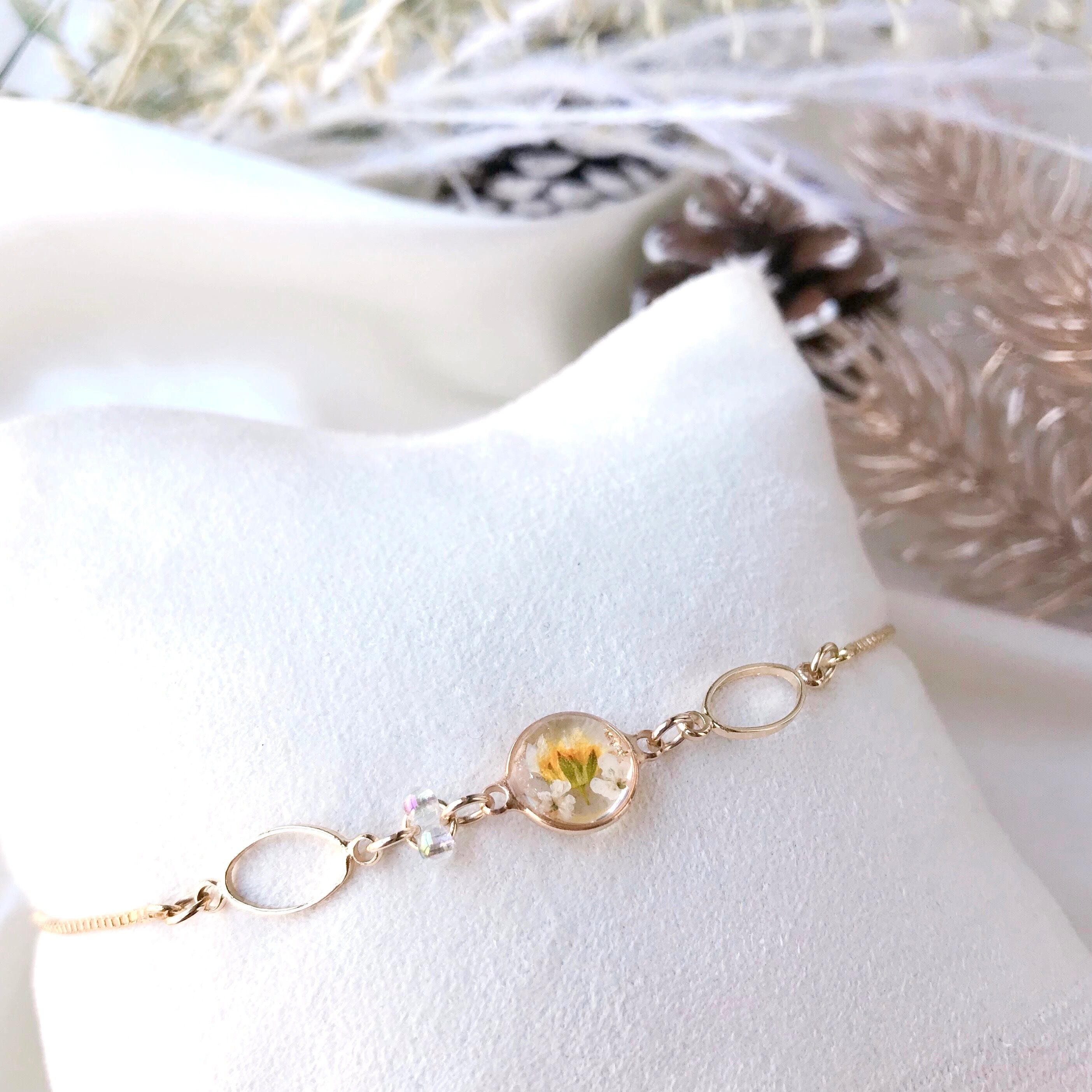 ✨繊細なデザインかつ全体として華奢なイメージでお使いいただけるブレスレットです.•*