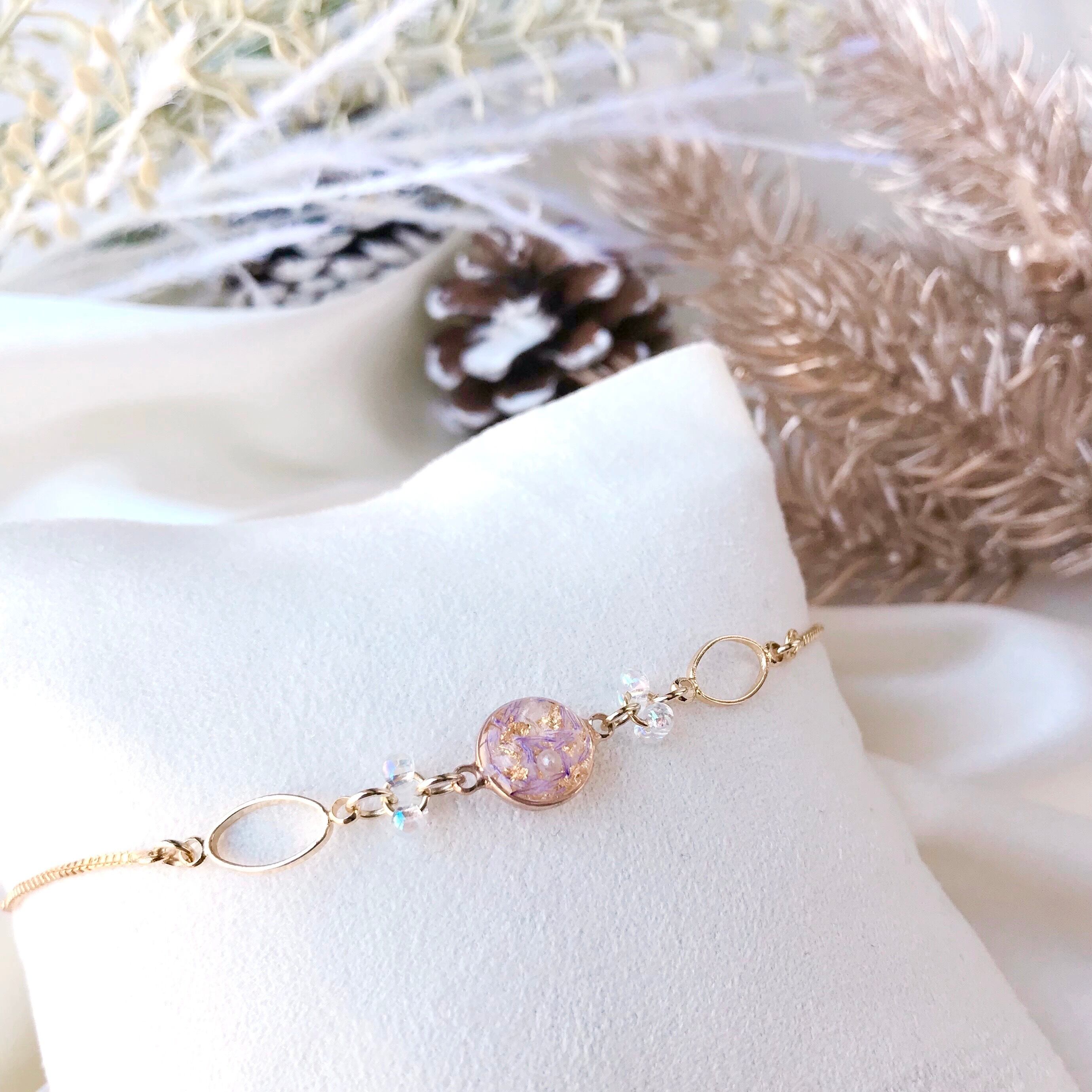 ✨繊細なデザインかつ全体として華奢なイメージでお使いいただけるブレスレットです.•*