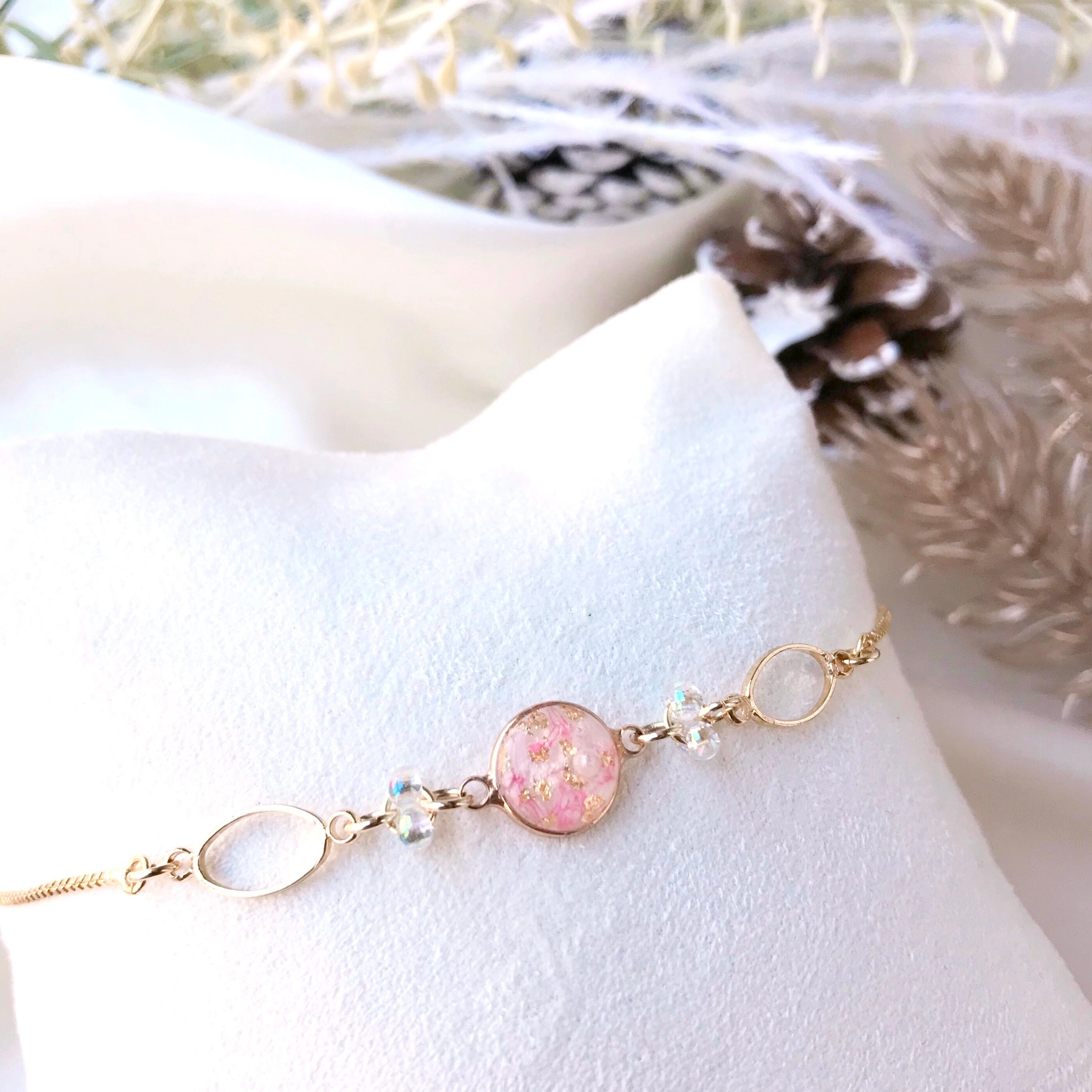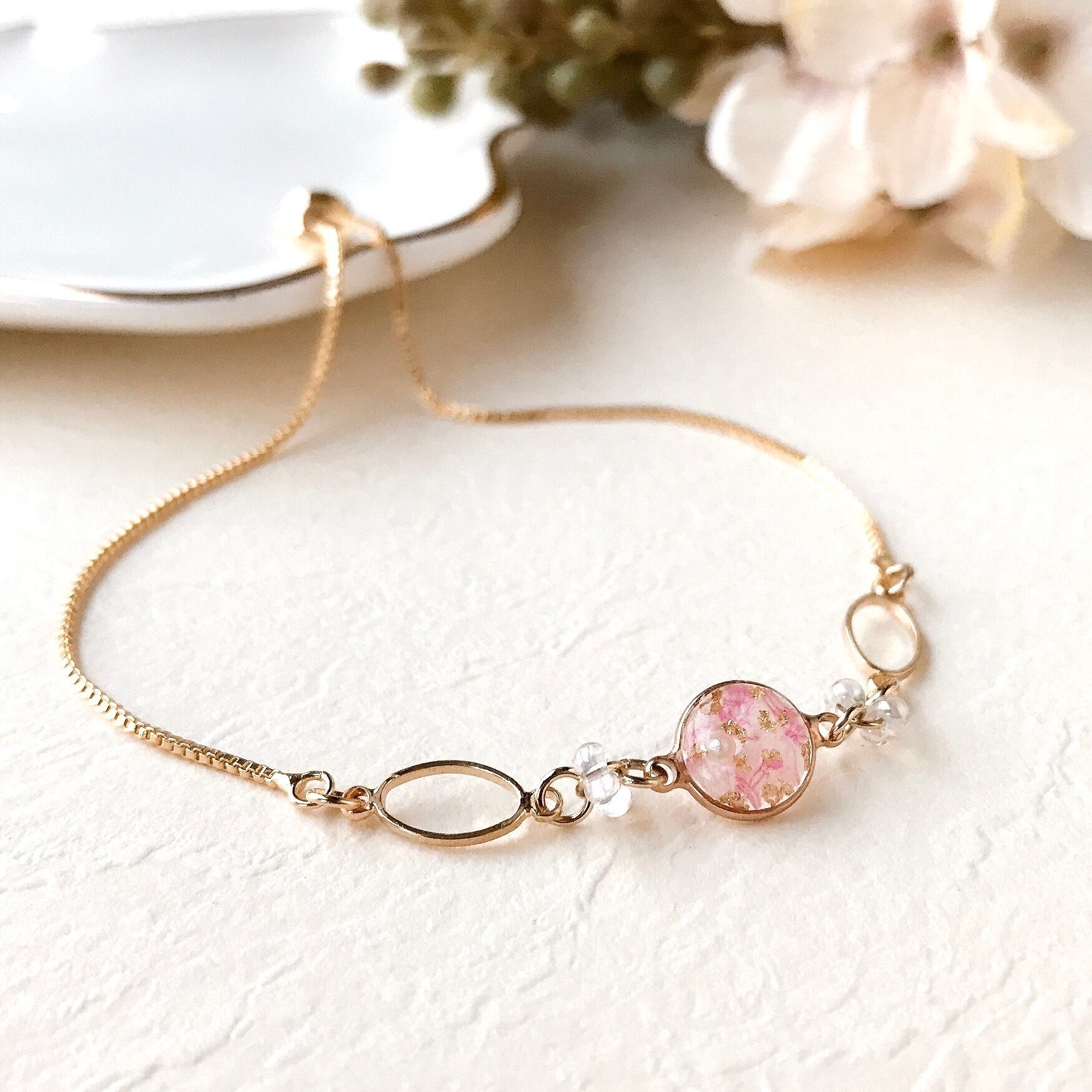 ✨繊細なデザインかつ全体として華奢なイメージでお使いいただけるブレスレットです.•*