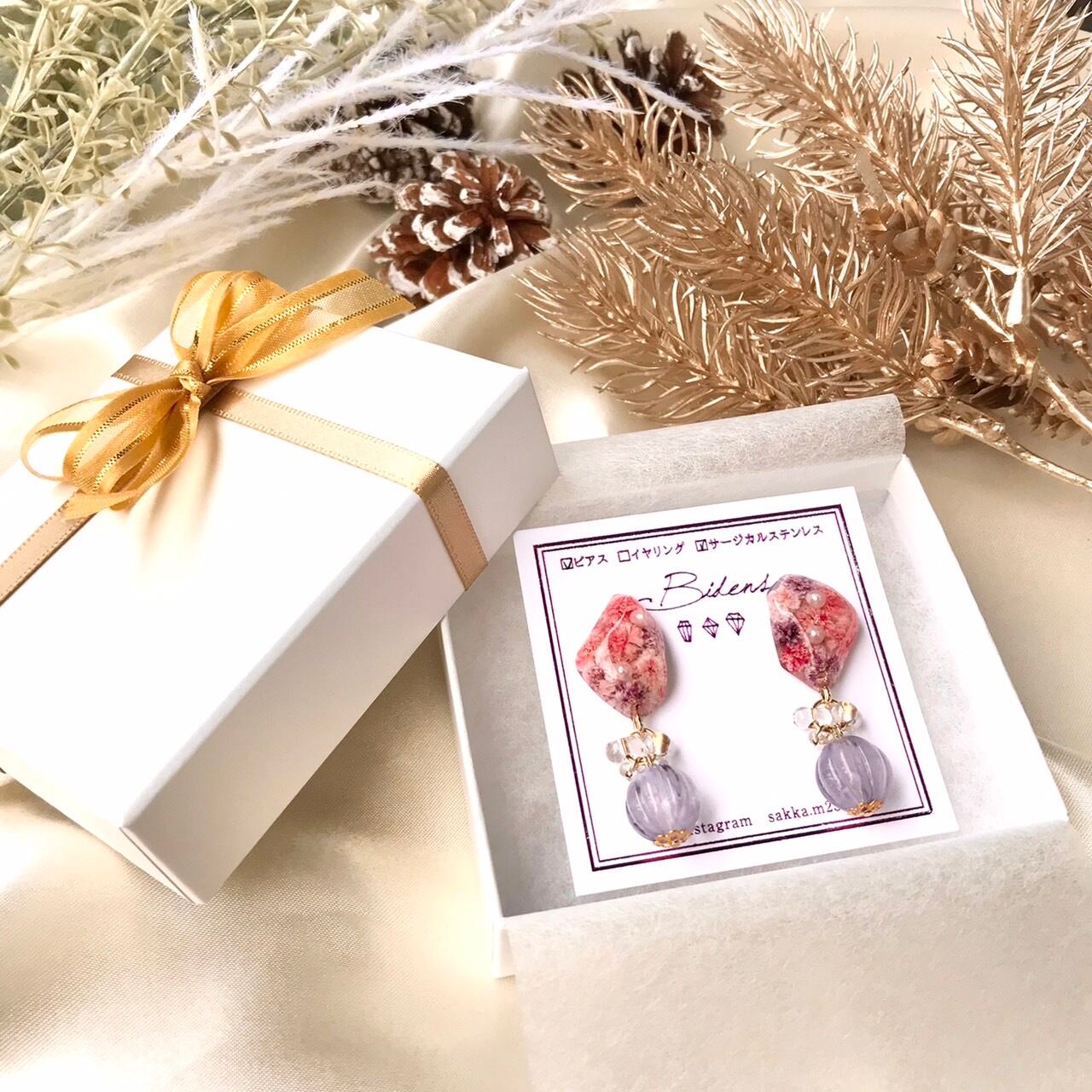 ・無料ラッピング:通常の梱包にゴールドのサテンリボンとシールをお付けします୨୧