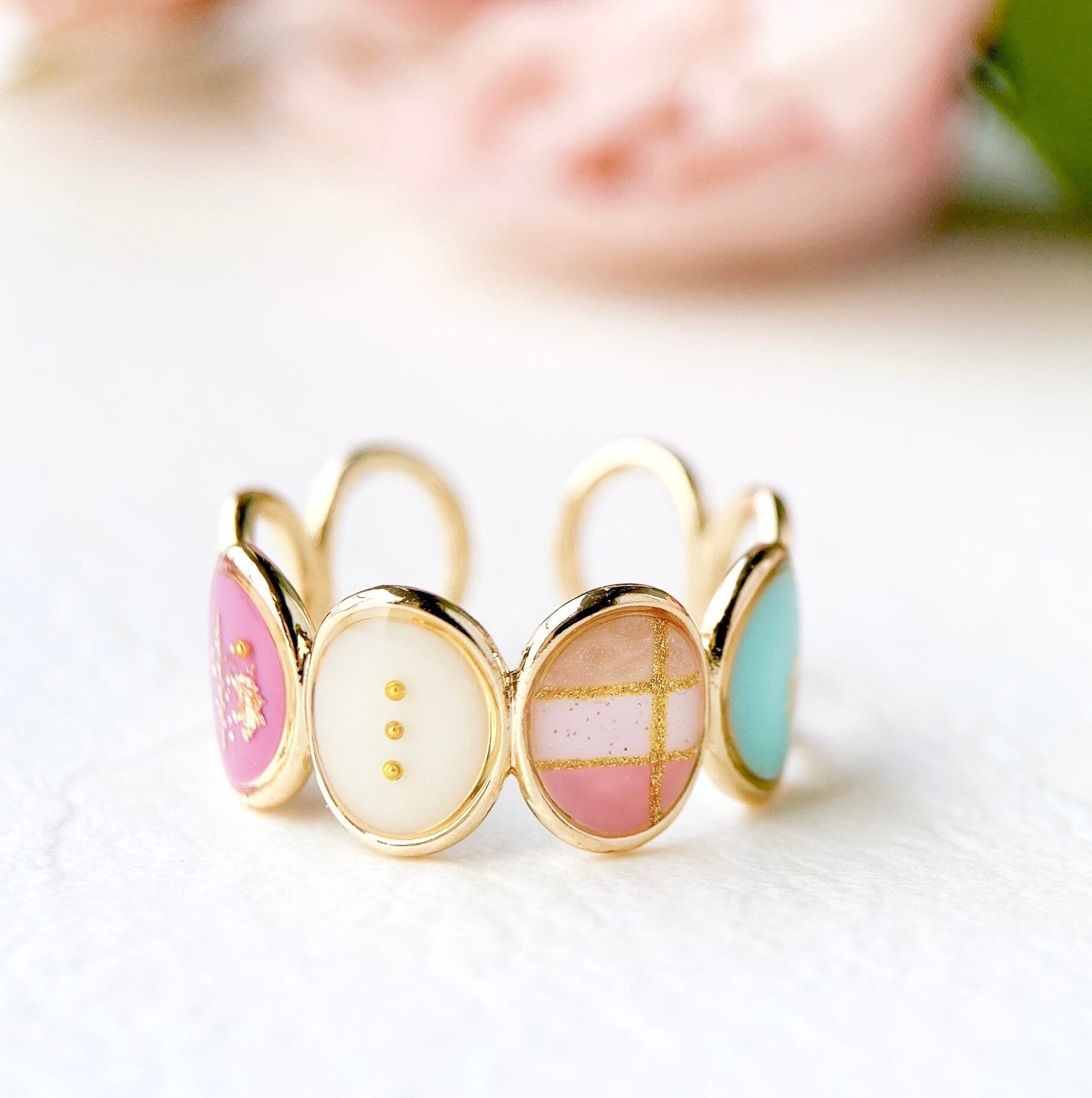 ボタン風デザインと配色もこだわりのリング ˜˷