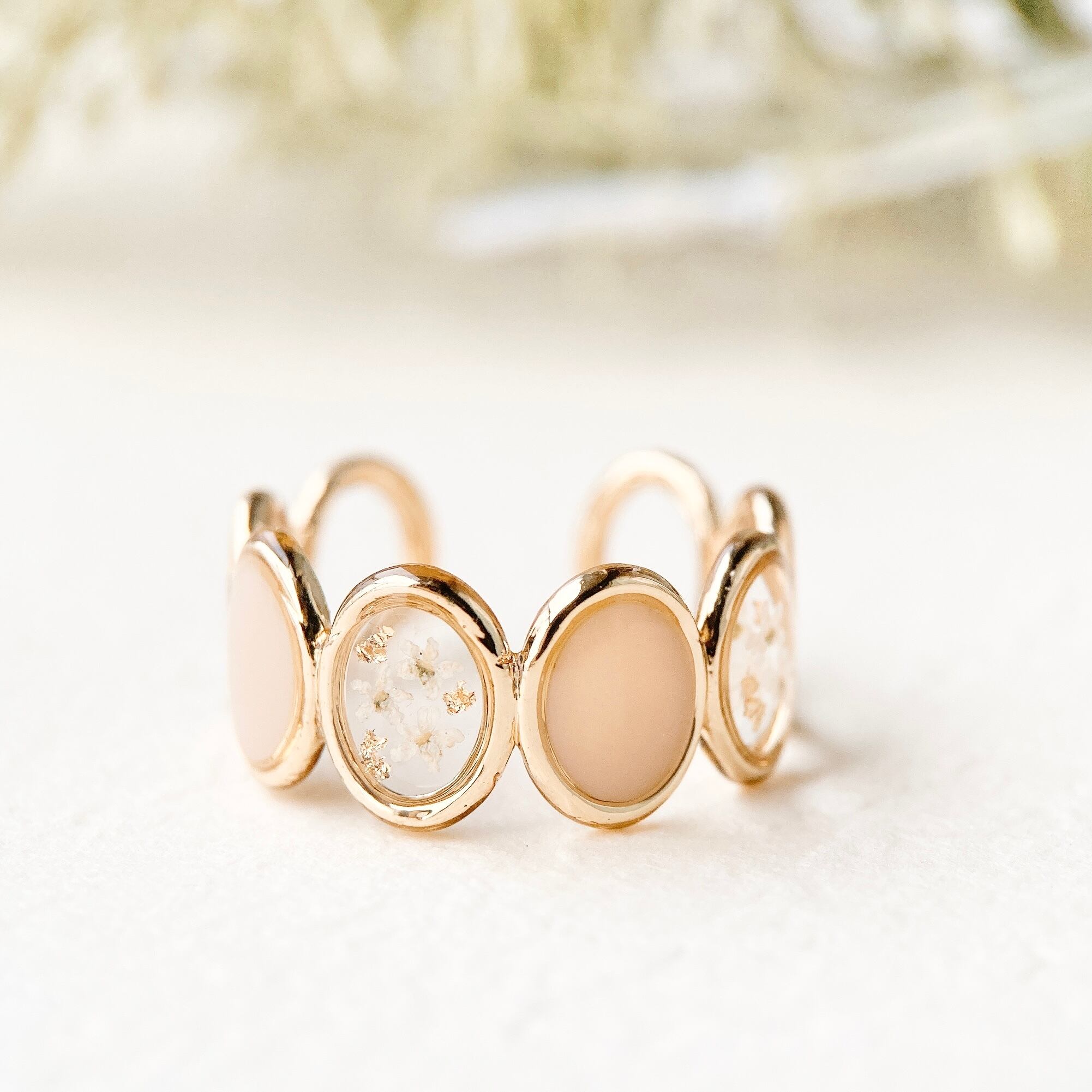 ✨クリアの2枠は本物のお花で、好き嫌いがわかれない白のレースフラワーと金箔で統一したデザインリングです⸒⸒