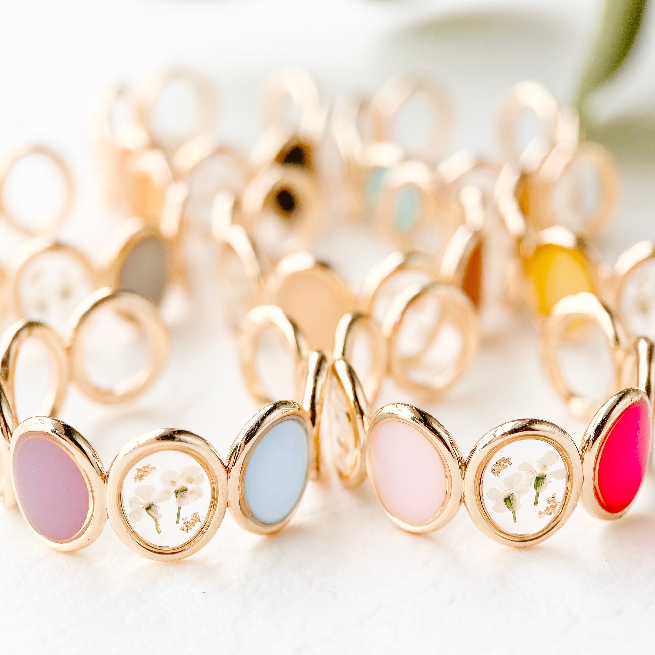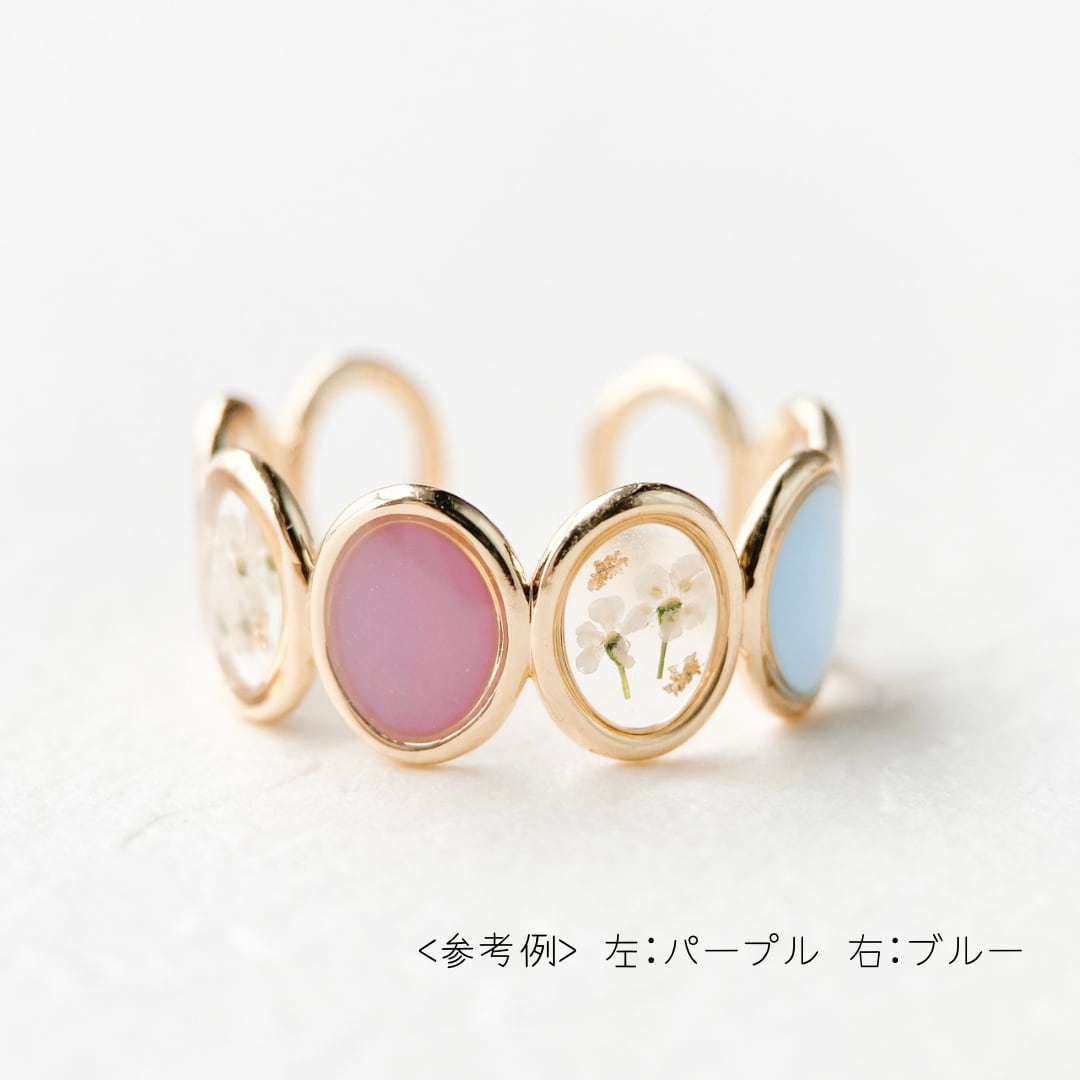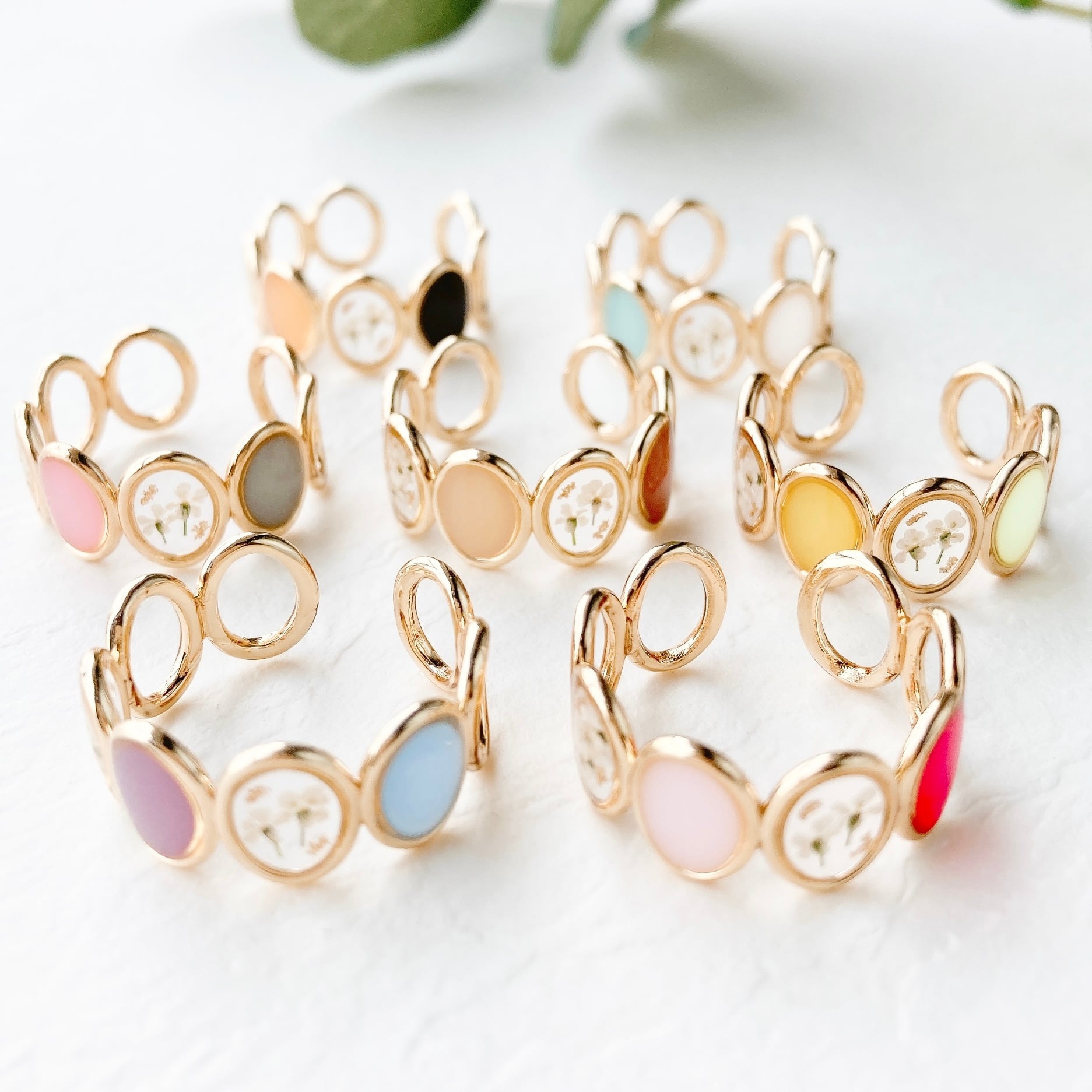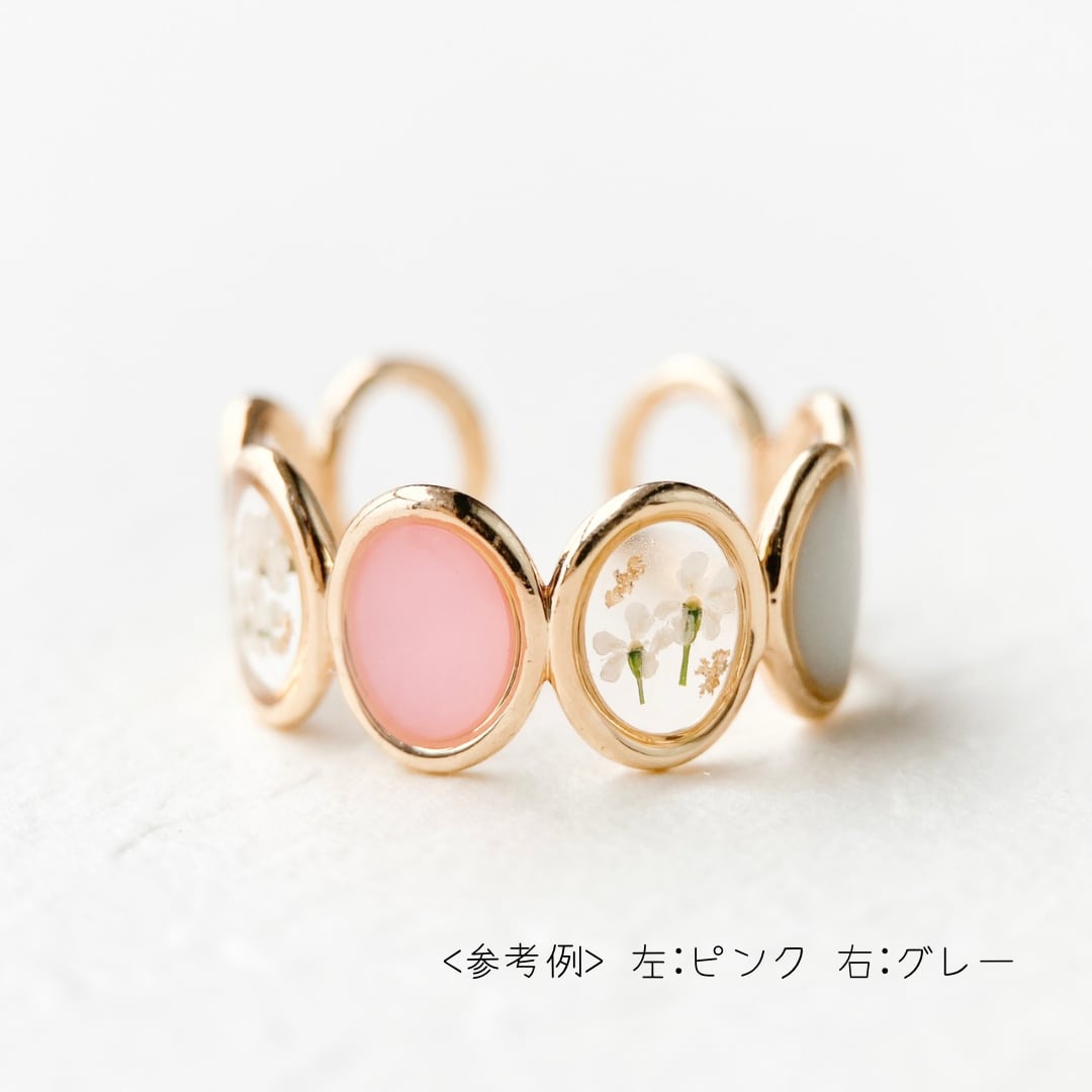 ✨クリアの2枠は本物のお花で、好き嫌いがわかれない白のレースフラワーと金箔で統一したデザインリングです⸒⸒