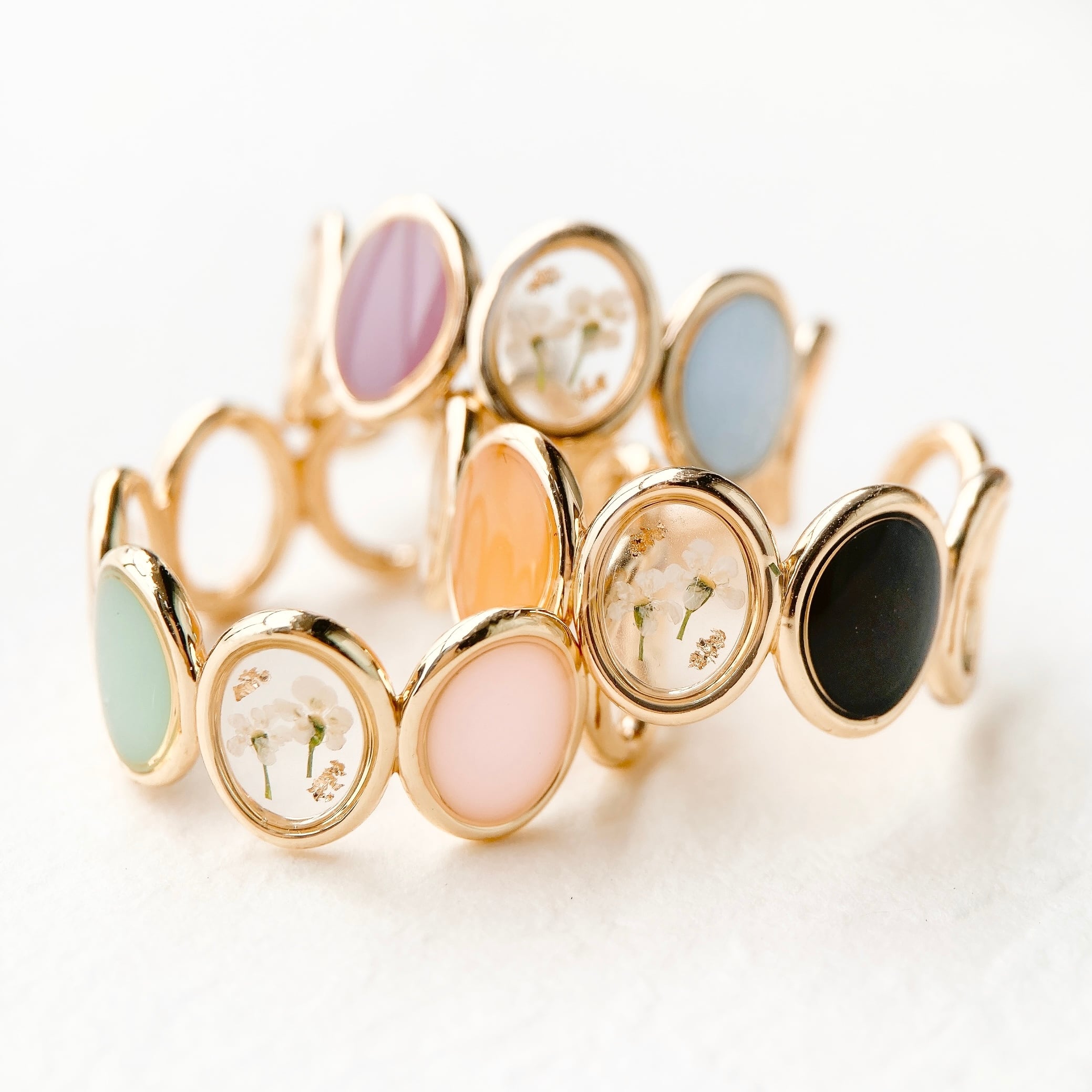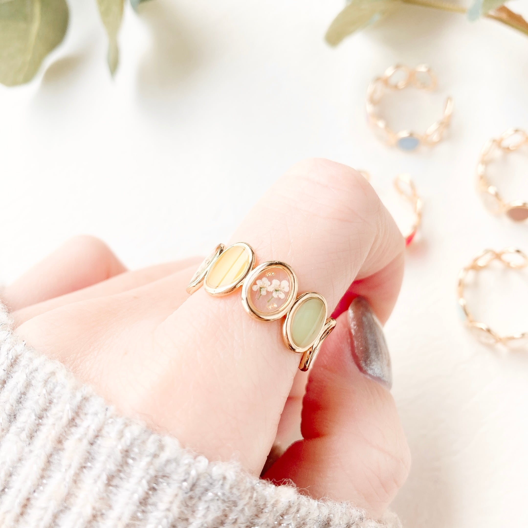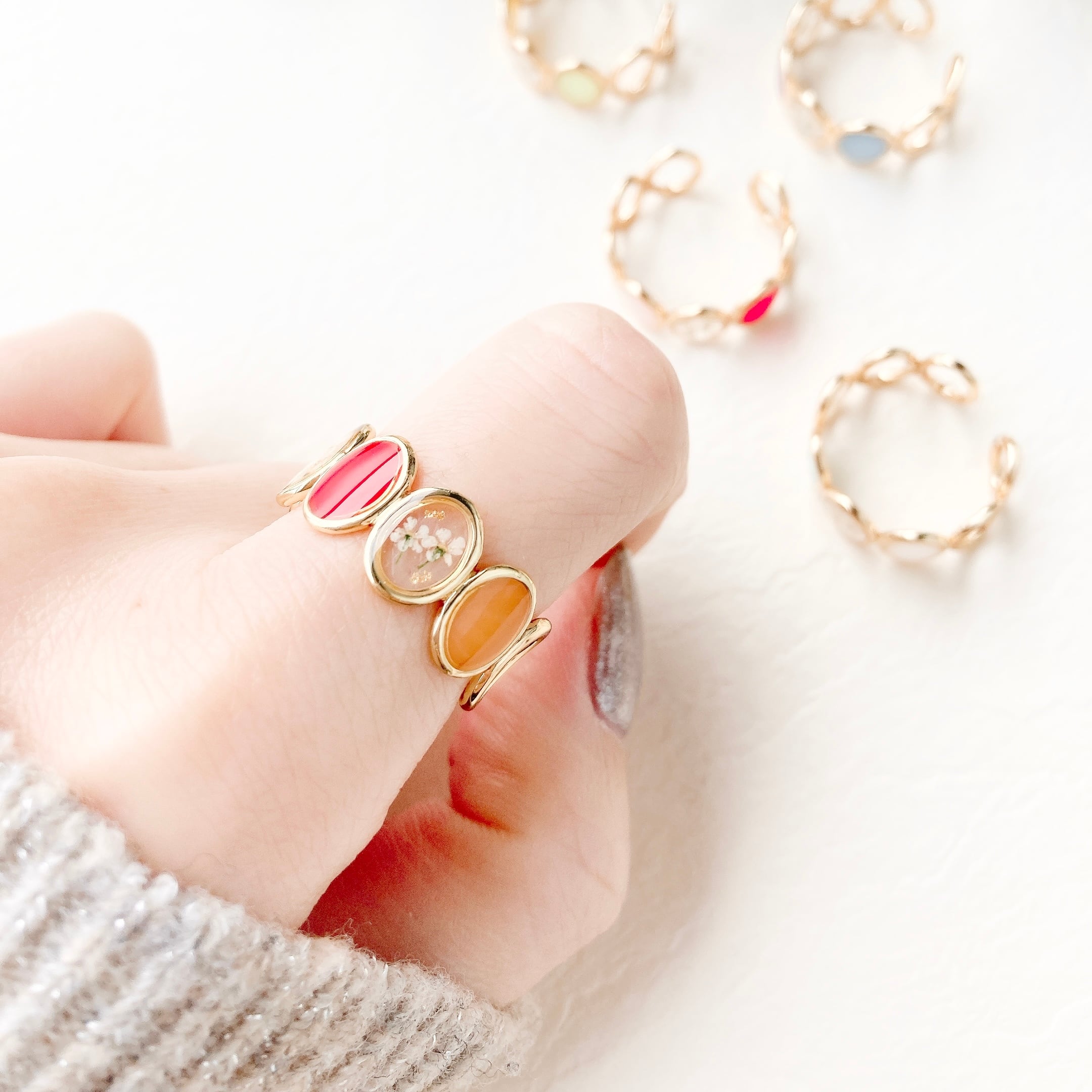✨クリアの2枠は本物のお花で、好き嫌いがわかれない白のレースフラワーと金箔で統一したデザインリングです⸒⸒