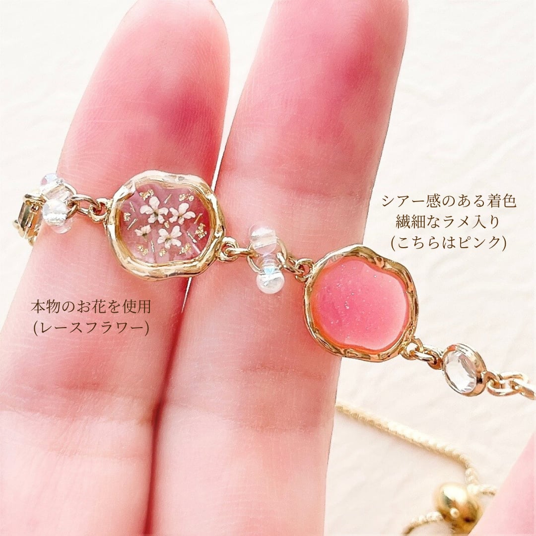 ✨クリアの枠は本物のお花で、白のレースフラワーと金箔でデザイン⸒⸒